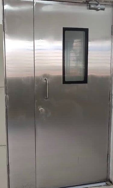 PUF insulated Hinged Door, Sliding Door, Single and double Door with Floor Seals. Specialists in Customized Doors with PPGI, Stainless Steel and Aluminum Skins. Applications: Clean Room, Hospitals, Cold Room, food processing plants, Industrial or any types of Custom made with superior insulation performance, effectively preventing heat transfer and maintaining a comfortable indoor environment. Fire Rated Rockwool doors also supplied with customers specification